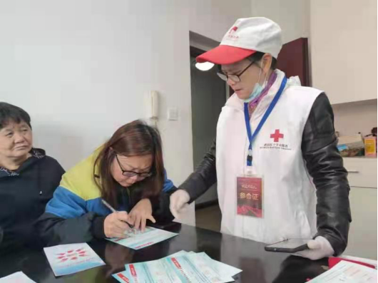 活动中红十字志愿者积极向市民宣传遗体捐献的相关法律法规,发放遗体捐献手册,协助市民填写捐献登记表,发放登记证和志愿者卡。