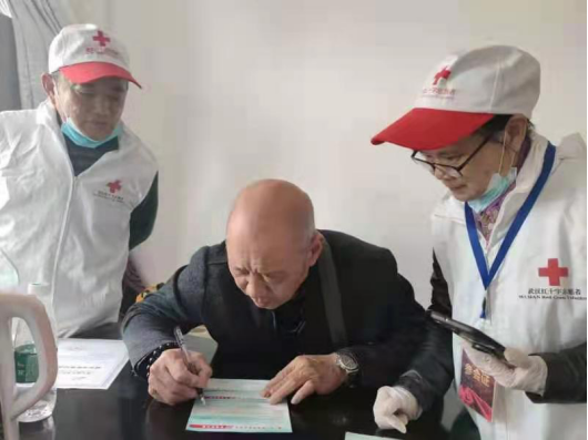 为弘扬“人道丶博爱丶奉献”的红十字志愿者精神,4月17日上午,武汉市红十字爱洒人间服务队走进社区,为有需求的市民办理遗体捐献登记服务。