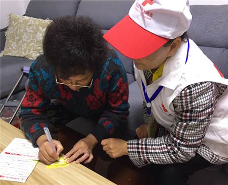 11月17日上午,武汉天气冷风细雨,为满足我市部分重度残疾人因行动不便,无法亲自到武汉市红十字会办理遗体捐献手续的困难,经武汉市红十字会批准,武汉市红十字爱洒人间志愿服务队特派出两名志愿者队员,来到了位于武汉市汉阳区江堤中路江欣苑322栋1单位401号,为行动不便的重残人上门办理了遗体捐献手续。