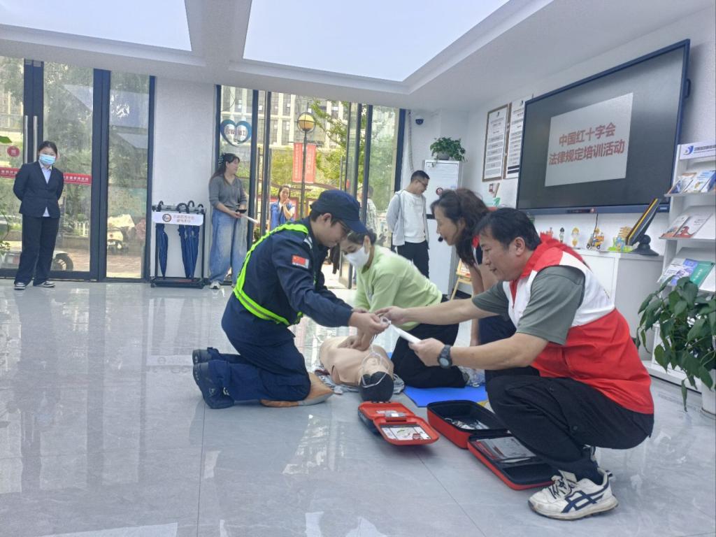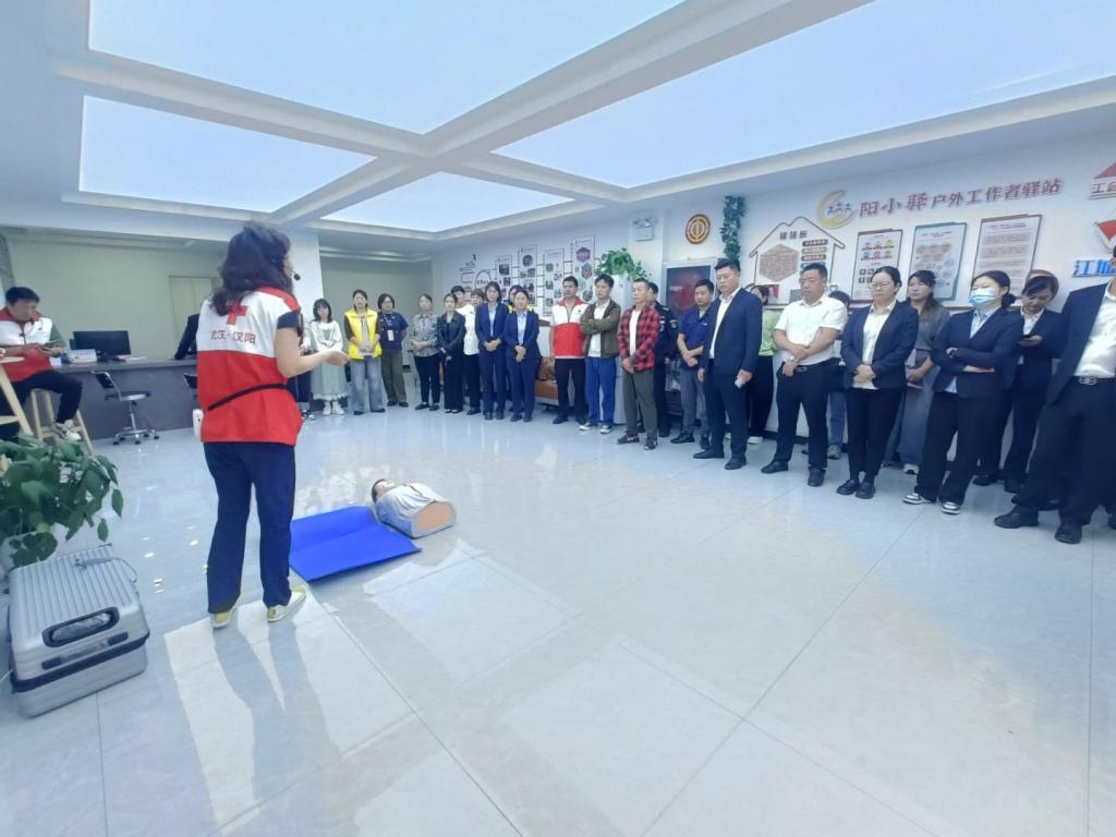 为进一步弘扬“人道、博爱、奉献” 的红十字精神,提高社区居民的应急救护意识和自救互救能力,更好地学习宣传《中华人民共和国红十字会法》等法律法规和习近平总书记重要致信精神,2025年10月17日上午,汉阳区红十字会在四新街道总港西岸社区工会驿站开展了“学习红十字知识 筑牢生命防线”红十字急救培训宣讲活动。来自辖区各物业代表、居民、新就业群体、志愿者等60人参与了培训。