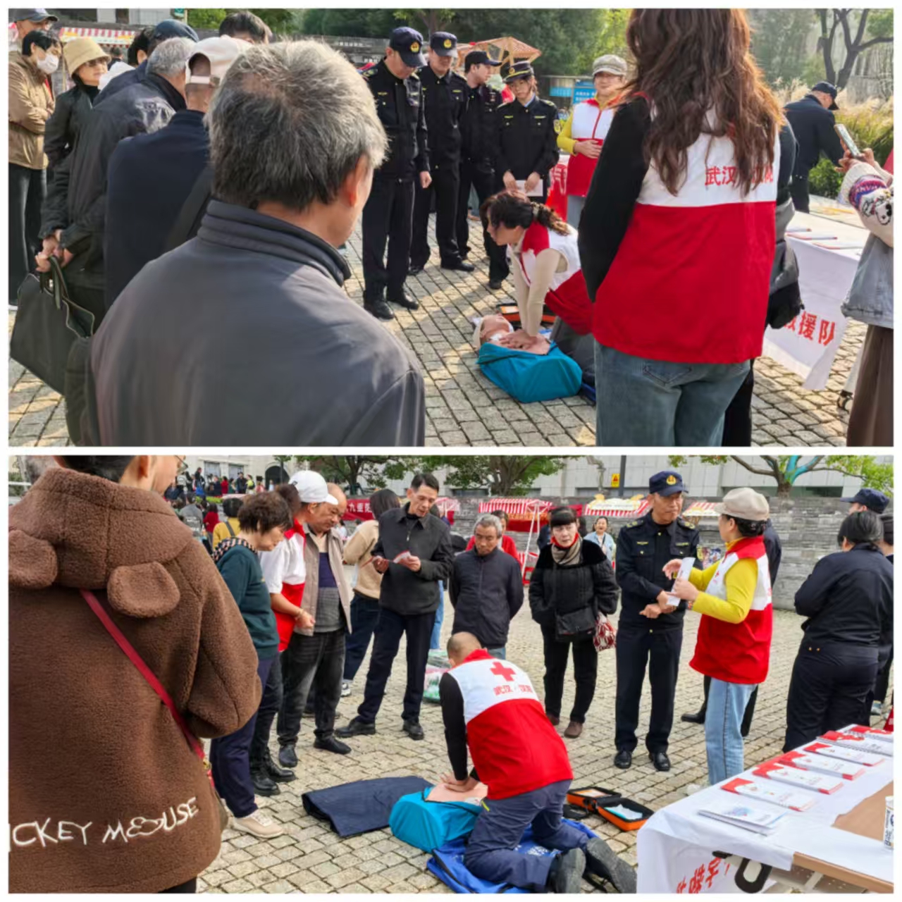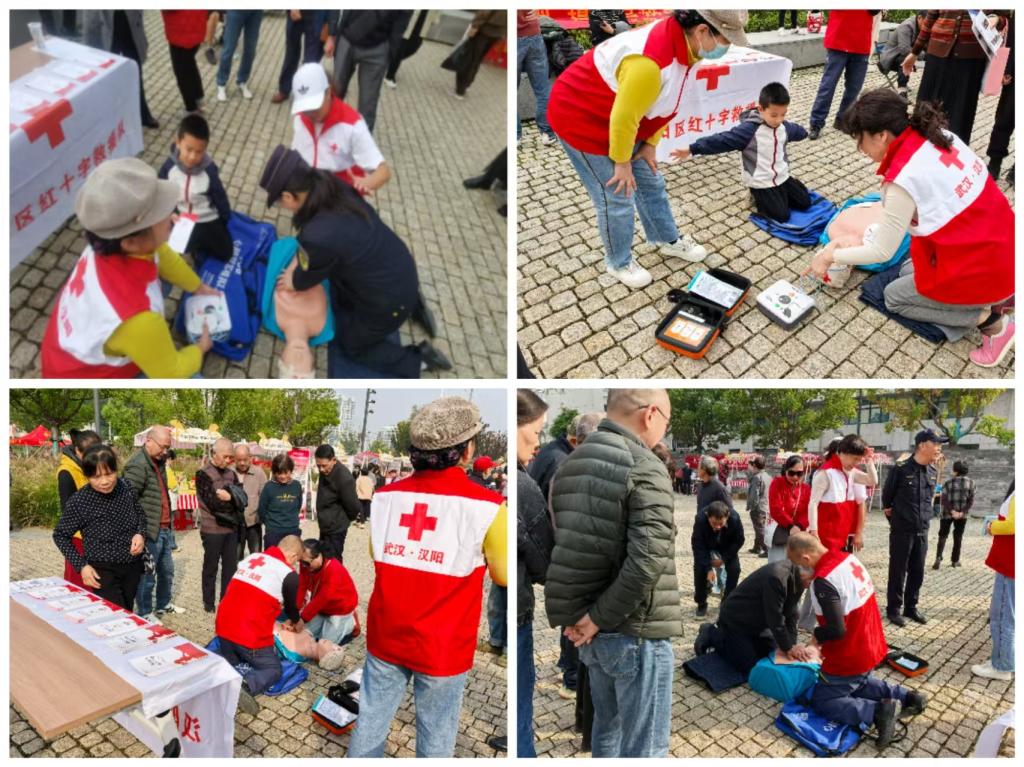 岁岁重阳,今又重阳。2025年10月29日重阳节,武汉市汉阳区汉阳树公园热闹非凡,人头攒动,来自四面八方的人群汇聚一起,载歌载舞欢庆重阳节。借此机会,汉阳区红十字会在此举办了一场红十字应急救护普及培训。本次活动贯彻市红十字会关于开展“情暖重阳·人道助老”主题活动的通知精神,以弘扬“敬老、爱老、助老”传统美德为核心,彰显对老年群体健康福祉的深切关怀。
