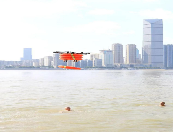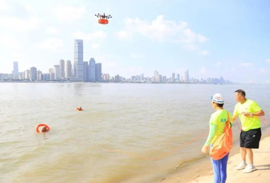 武汉市云豹救援队运用无人机,将救生圈精准、迅捷地空投至目标位置,展现了复杂水域的快速投送能力。长江救援队则演示了专业水上打捞救援,队员配合默契,高效定位并“打捞”起溺水者,彰显了过硬的搜救实力。