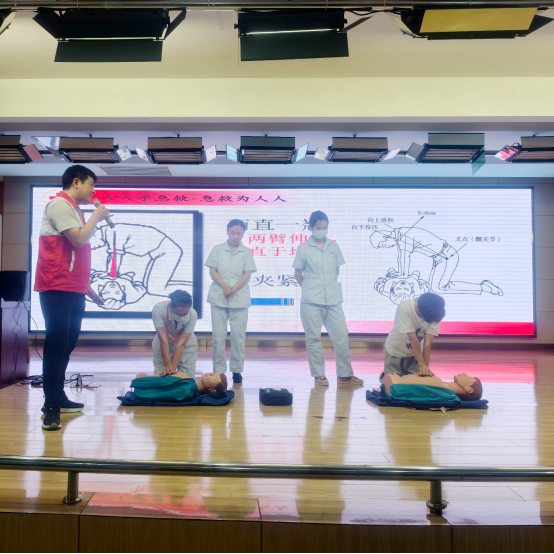 本次活动聚焦老年护理实际场景,采用讲练结合的模式,为40余名护理及行政人员带来一堂生动实用的生命教育课。培训围绕心肺复苏、AED使用、气道异物梗阻排除等核心应急技能展开,洪山区红十字“救在身边”志愿服务队师资结合真实案例与分步示范,细致传授应急处置要领。参训人员积极投入模拟练习,在反复实践中巩固技能要点,有效提升对突发情况的响应与处置能力。