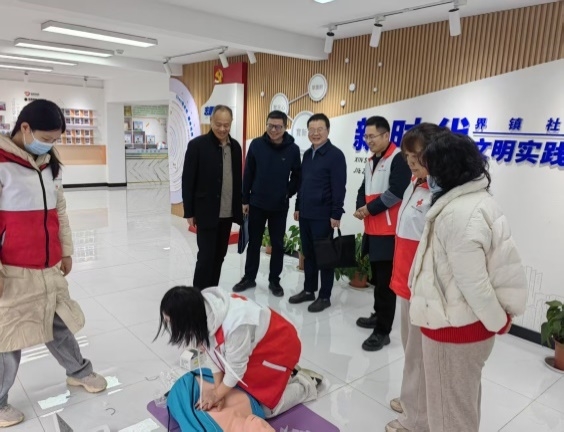 在五里界街界镇社区,调研组实地考察了“博爱广场”建设成果,对社区依托“红十字群众大舞台”开展惠民宣传的创新模式给予高度评价。随后,调研组走进社区党群服务中心,详细了解基层组织架构、阵地功能布局及“博爱家园”项目进展。据社区负责人介绍,界镇社区现有红十字会员30人、志愿服务队主力队员60人、志愿者百余人。过去一年,社区累计开展博爱宣传活动10余场,化解矛盾纠纷20余起,提供上门服务60余次,并通过民生项目切实提升居民生活质量,成效显著。