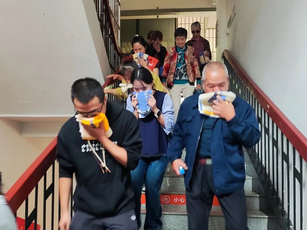 9月25日,社区红十字会牵头统筹,以“实战化演练”夯实应急能力。联合社区红色物业、村改制公司、共建单位及辖区企业、生产经营单位代表,邀约居民骨干共90余人参与节前应急消防演练,并特别邀请沌阳街道专职消防站消防员担任指导。演练现场,红十字志愿者协助消防员搭建模拟场景,待模拟烟雾燃起,参演人员在红十字志愿者与消防员的引导下,严格遵循“低姿弯腰、湿巾捂鼻”的科学逃生规范,从指定区域有序向安全地带撤离,整个过程紧张有序、配合默契。此次演练不仅检验了社区应急联动机制,更通过红十字“实操化教学”,让参演人员掌握了火灾逃生的核心技能,筑牢了“自救互救”的第一道防线。