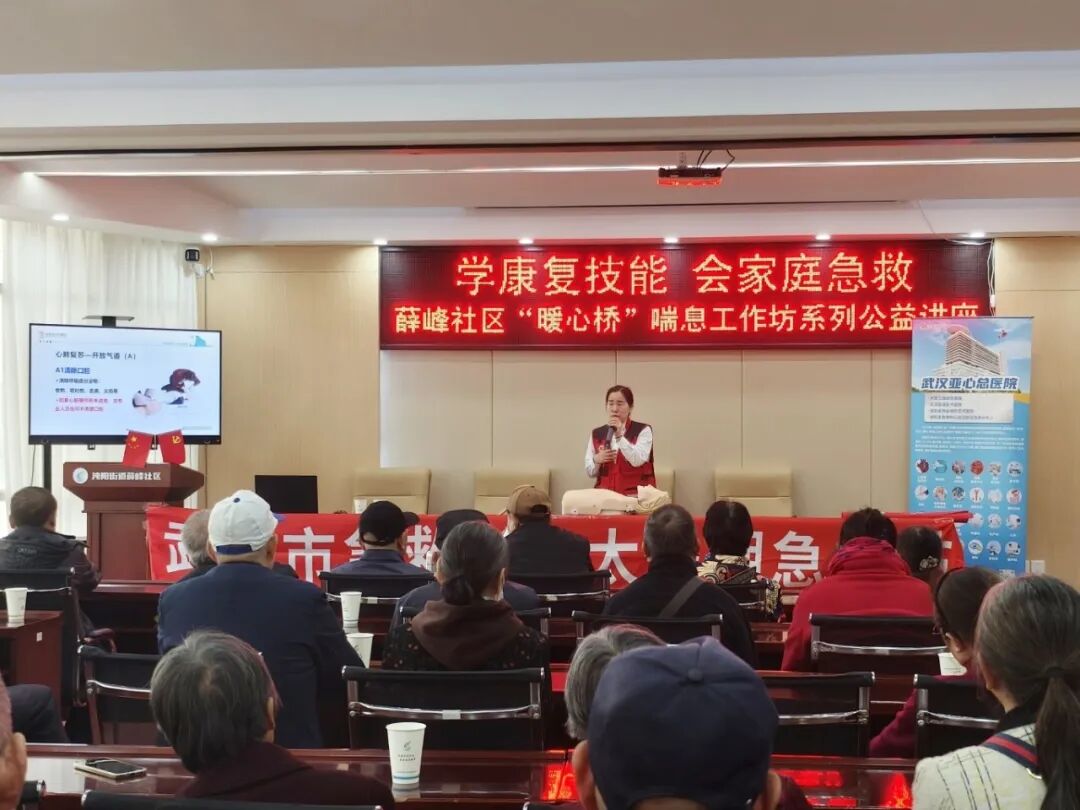 为增强社区居民的应急救护意识,提升群众在突发事件中的自救与互救能力,11月12日上午,沌阳街道薛峰社区红十字会联合武汉亚心医院及相关志愿团队,共同开展了“学康复技能 会家庭急救”主题公益讲座。活动吸引了众多居民参与,现场互动热烈,取得了显著成效。