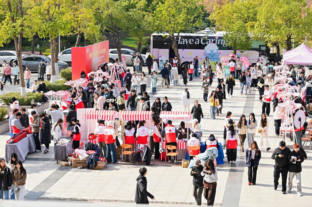 12月3日上午,武汉商学院校园内洋溢着一片温暖与活力的气息。由武汉经开区红十字会主办、武汉商学院承办,区卫生健康局参与的“青春‘救’在身边,红十字与你同行”主题宣传教育活动,在北区食堂门口正式拉开帷幕。活动以沉浸式互动、专业宣讲及无偿献血等多元形式,普及艾滋病防治知识,强化师生自我防护意识,并号召师生以实际行动奉献爱心,共同营造关爱生命、共筑无“艾”校园的良好氛围。