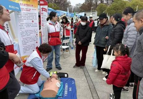 3月3日下午,2026年武汉青年“3·5”学雷锋志愿服务集中行动在汉江湾体育公园成功举行。硚口区红十字会积极参与,现场开展应急救护知识普及活动,将专业急救技能送到市民身边,以实际行动践行雷锋精神与红十字“人道、博爱、奉献”精神。