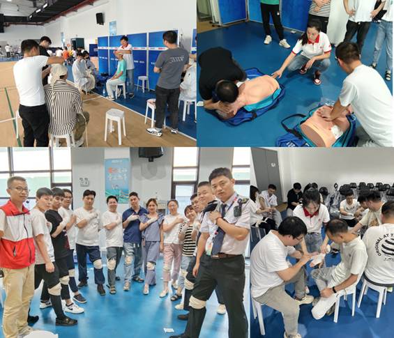 培训以理论教学和实操训练相结合的方式进行。红十字救护师资通过生动形象、通俗易懂的方式,讲解了红十字知识、救护概论、心肺复苏、创伤救护、气道异物梗阻清除以及AED使用原理等内容。