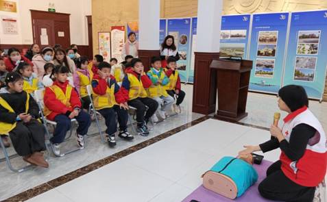 活动中,区红十字会讲师结合生命健康安全教育体验区的图文展板与多媒体资源,生动讲解了红十字运动发展历程与“人道、博爱、奉献”精神内涵,引导参与者深入理解生命尊严与互助关爱的重要意义,尤其增强了青少年对生命安全的认知。