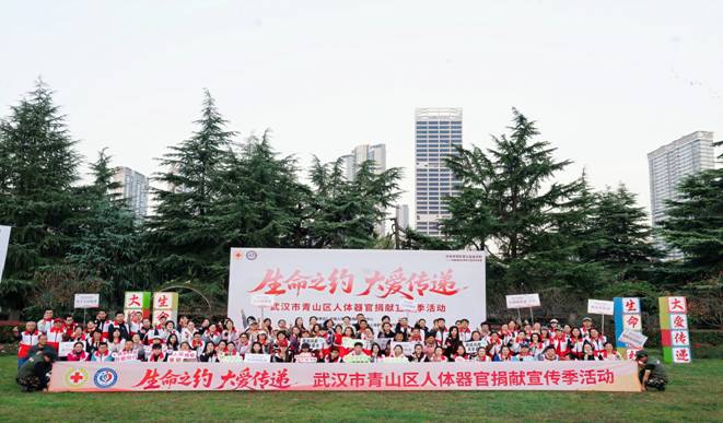 金风送暖,大爱传情。11月4日下午,由中国人体器官捐献管理中心主办,青山区红十字会承办的“生命之约·大爱传递”人体器官捐献宣传季活动在和平公园举行。省红十字会党组成员、专职副监事长阳胜芳,省人体器官捐献管理中心副主任王曼,市红十字会副会长马良,区人民政府副区长、区红十字会会长屠浩文,武汉大学中南医院OPO科常务副主任周威,区红十字会党组书记、常务副会长邵艳等出席活动,区相关部门、街道、社区共计150余人参加活动,共同点亮“生命接力”的公益之光。