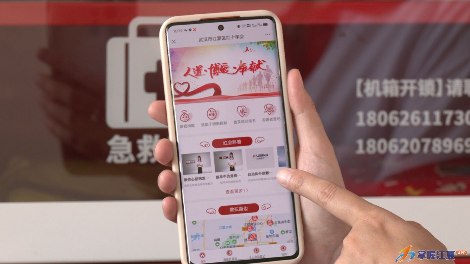 江夏区红十字救在身边应急并救护服务中心以博爱驿站为契机,采取线上线下相结合的方式,通过五个维度,即场地、人员、物品、网络、资源整合,逐步打造覆盖全区的立体化、网格化应急救护服务体系。通过“武汉市江夏区红十字会”的官方微信公众号,不仅可以了解相关急救知识,一键找到距离最近的救护员,发生紧急情况可以邀请协同救援,还可以显示3个博爱驿站的具体位置并一键导航。