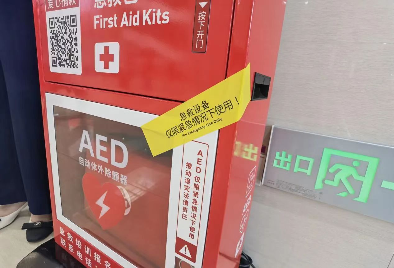 9月25日,随着AED封签的张贴,标志着相关设备的调试已经全部完成,江夏区首台红十字应急救护一体机在江夏区市民之家正式投入使用。