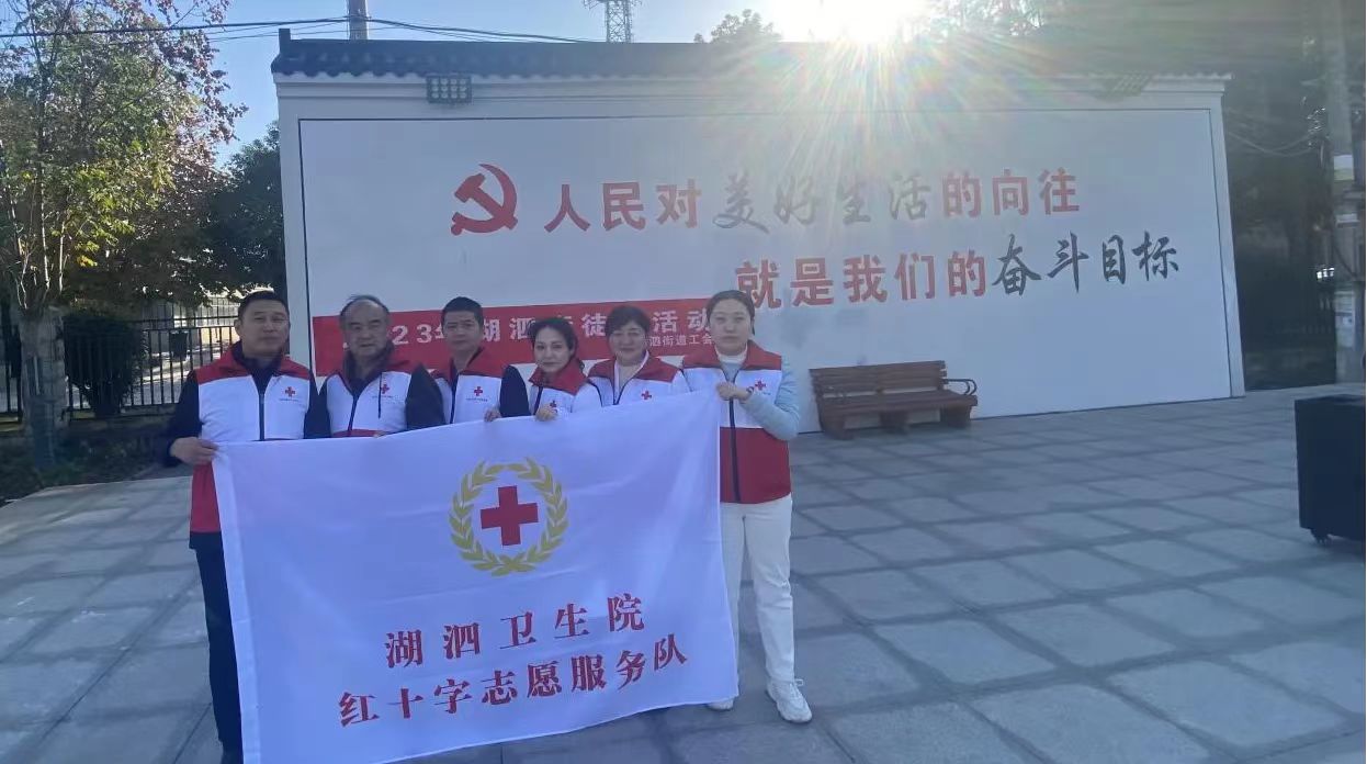 湖泗卫生院红十字会志愿服务队为宣传健康生活理念,提高公众对健康的认识和重视,在11月21日上午,湖泗街道举办的徒步活动中,由郑勇光队长组织5名队员全程为参赛选手提供应急救护、救援等保障服务。