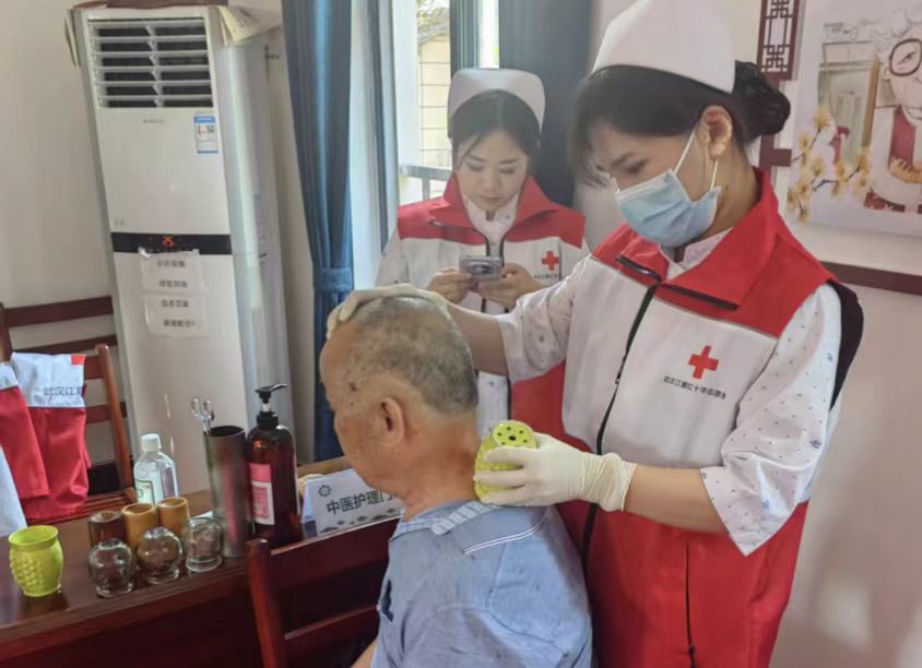 活动现场,来自内科、中医科和康复科的红十字志愿者详细询问老人们的身体情况,为他们进行了量血压、听心音、查血糖等常规检查,还耐心向老人们介绍了高血压、糖尿病、饮食卫生等健康知识,增加了老人对健康知识了解。康复科的红十字志愿者开展了艾灸、耳穴压豆、拔火罐等中医技术体验。
