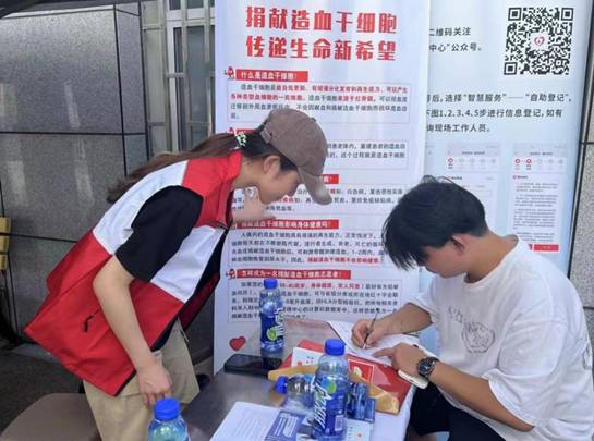 活动过程中,献血者们在红十字志愿者的引导下,有序排队进行扫码登记、血压测量、血液化验、血液采集、证书领取。现场还摆放了造血干细胞宣传展板,以便为献血者普及相关知识,介绍捐献流程和注意事项。